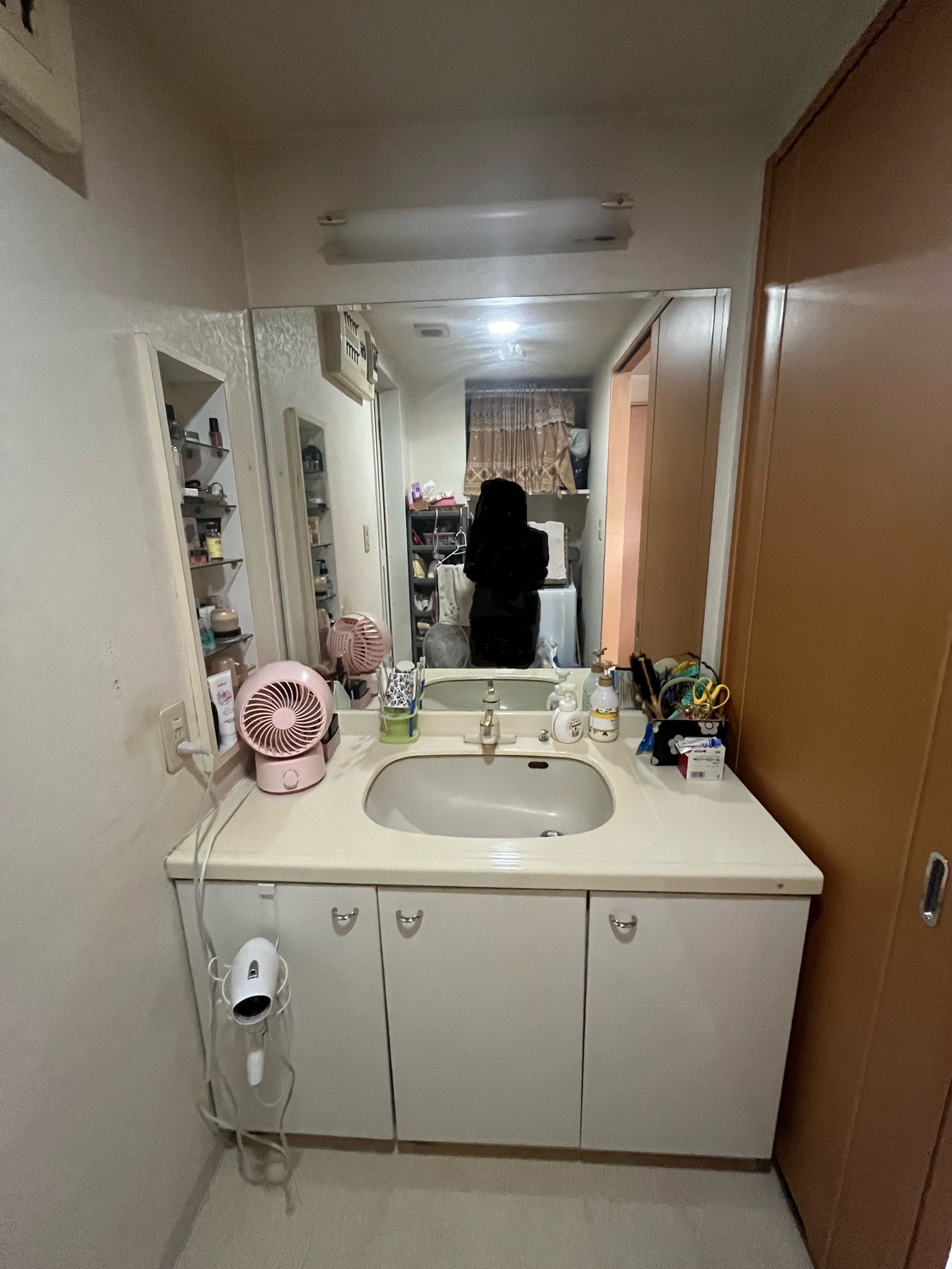 上部の梁のところに照明を持ってきて、明るい浴室へと変化しました。