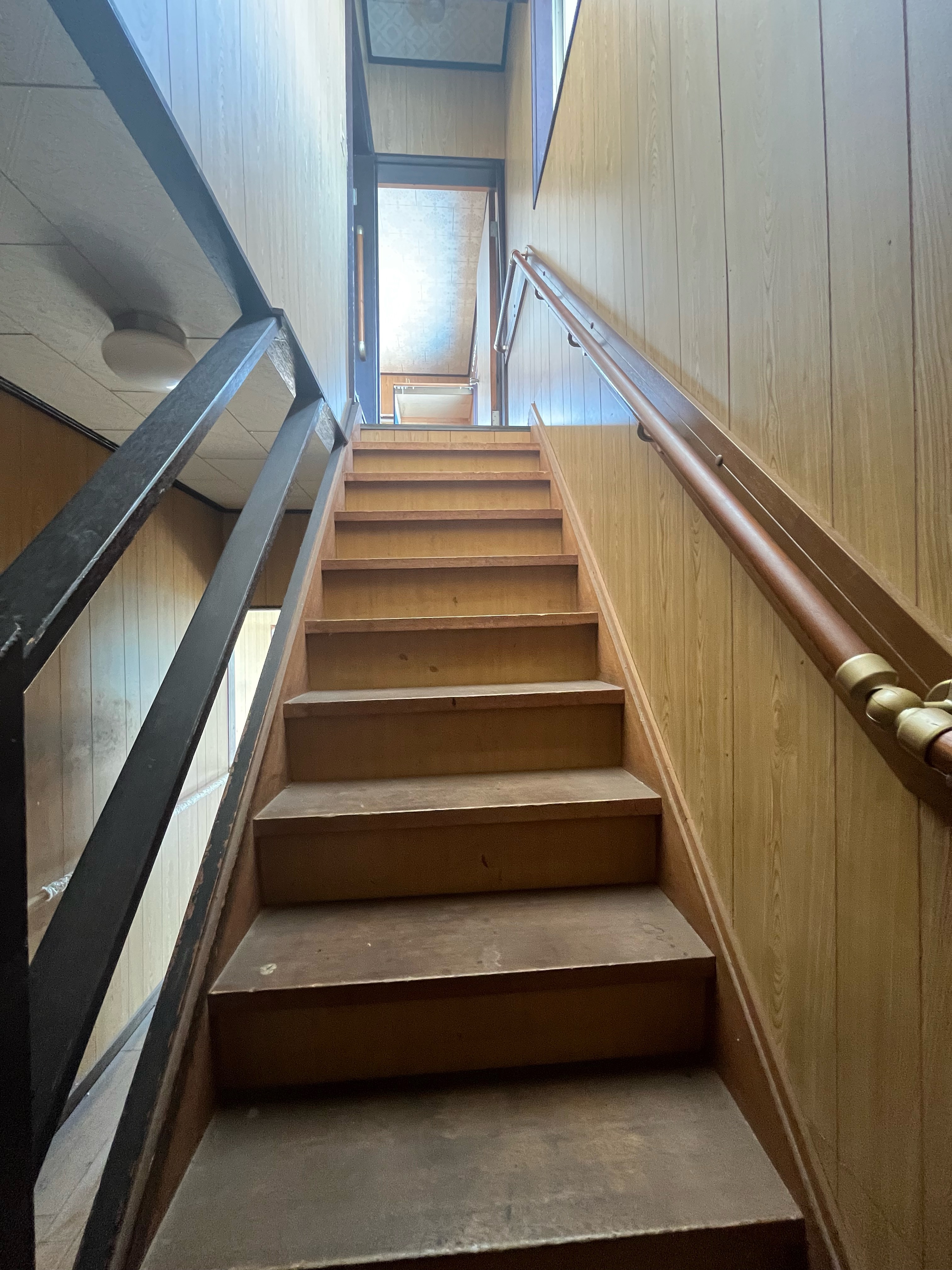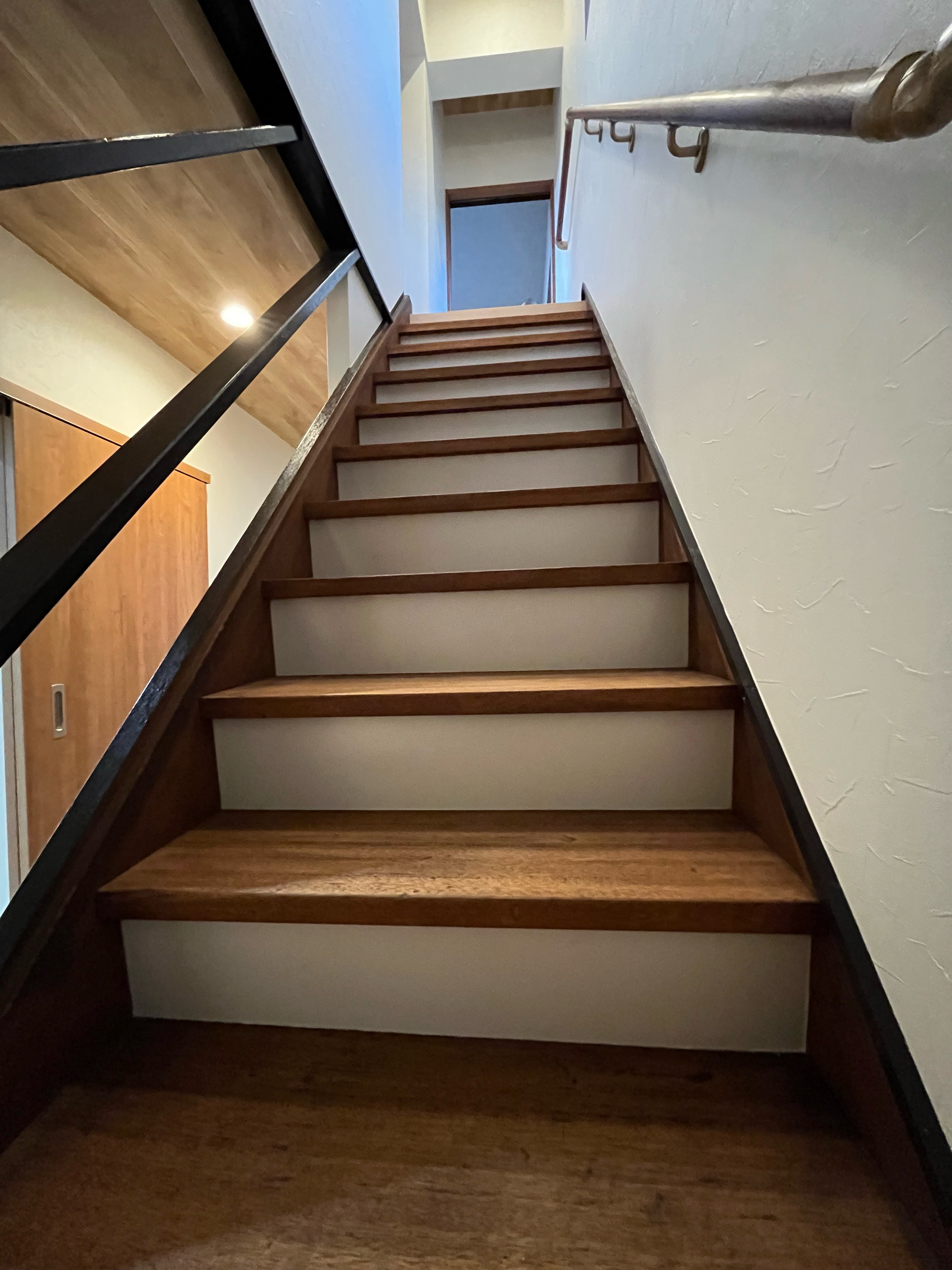 階段左右の手すりや階段材は、再塗装を施し、再利用しました。
