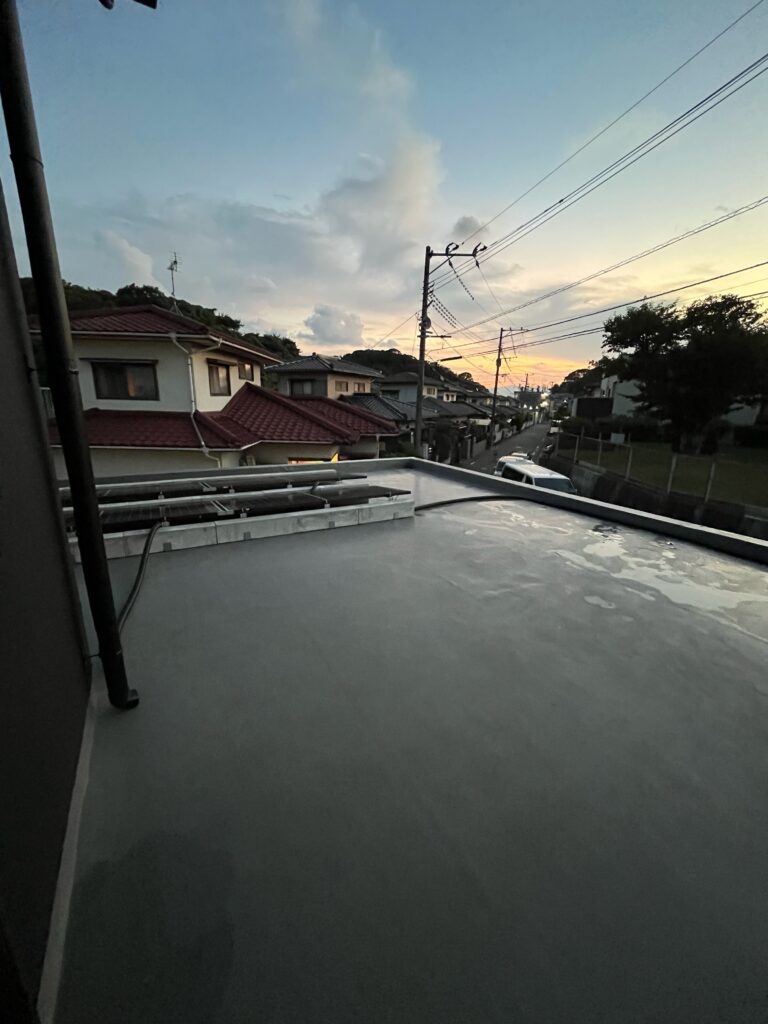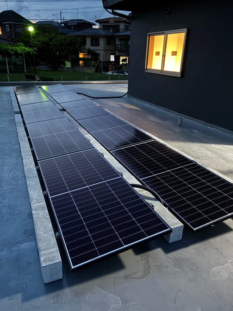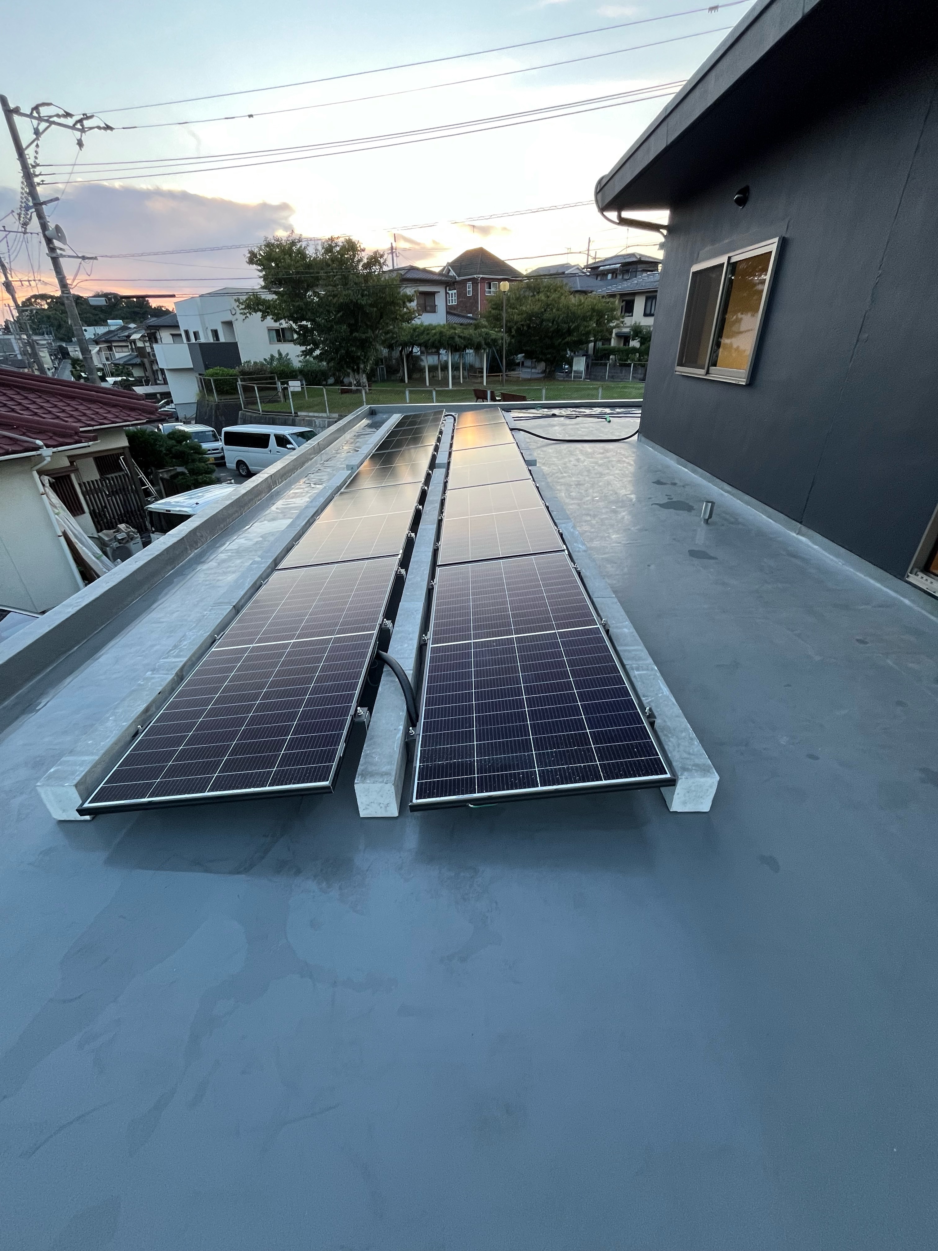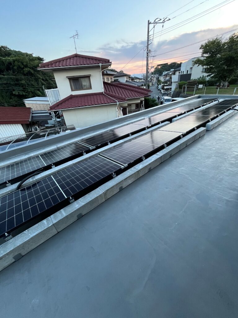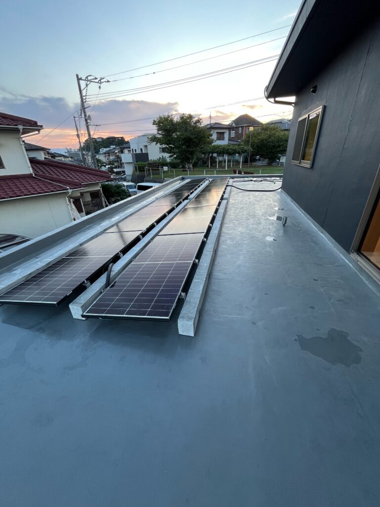 パラペット屋根には防水塗装を施し、その上に太陽光パネルを敷設しました。