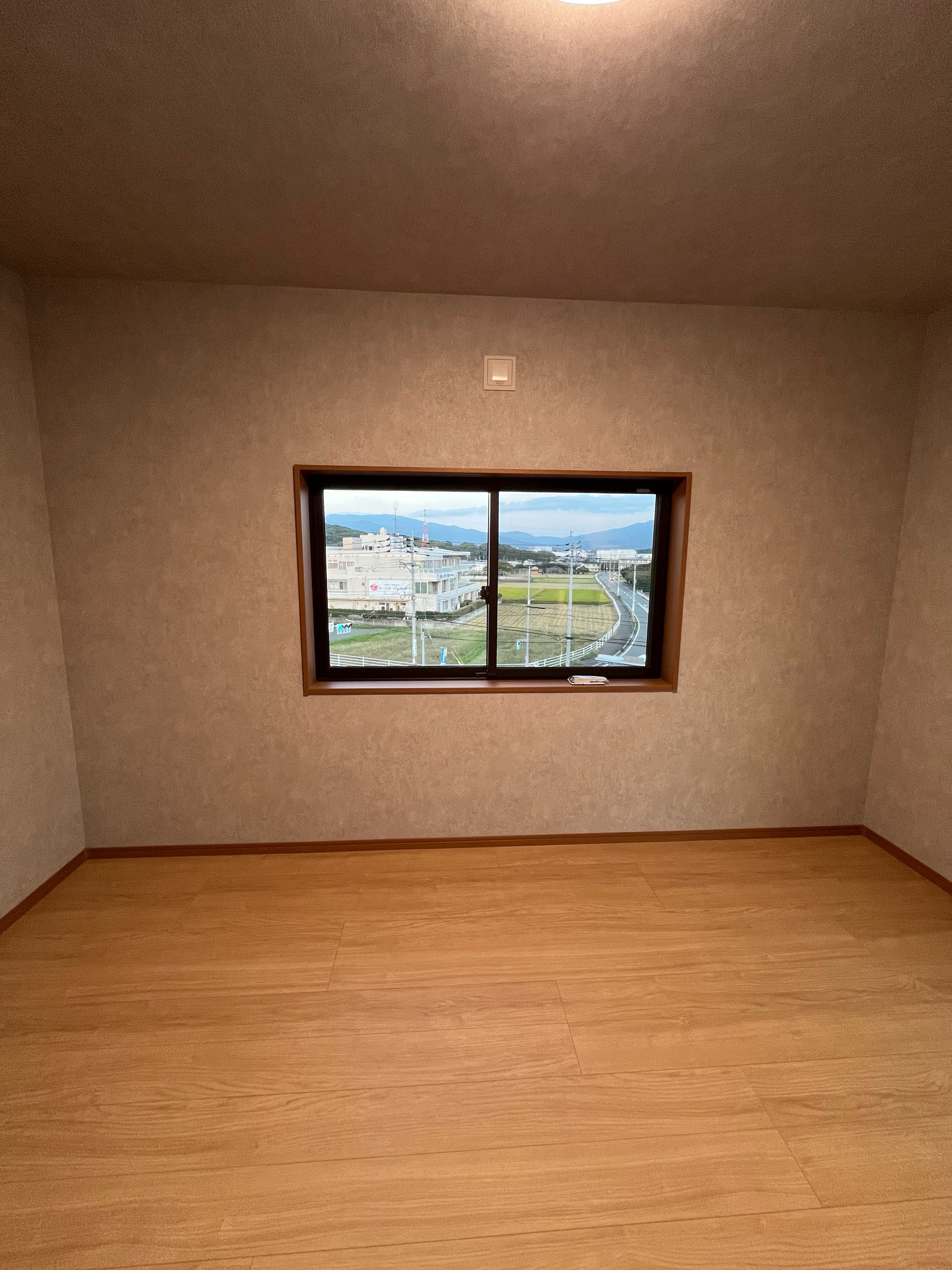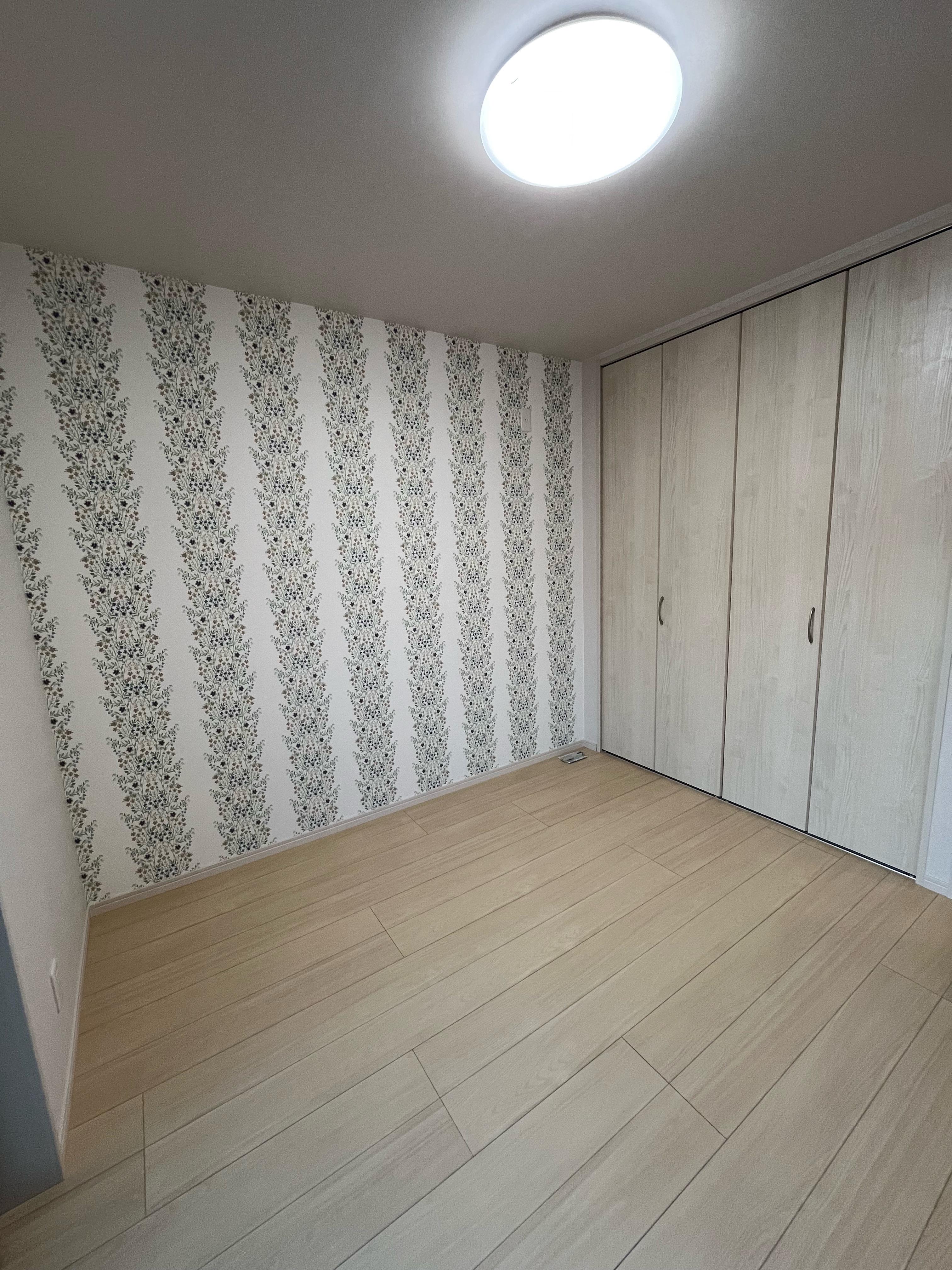 以前の窓は撤去して全て壁にしました。その面のクロスは少し柄の入ったもので仕上げています。
