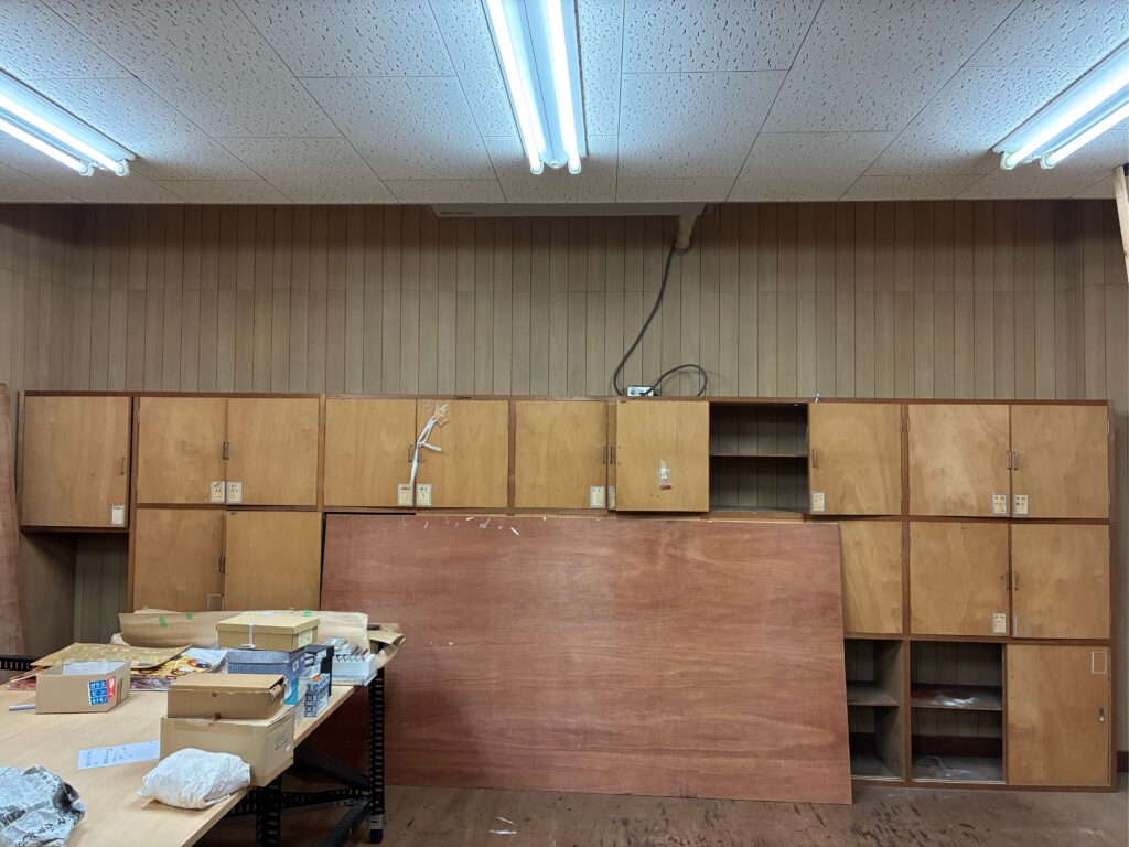 既存の収納棚は、できる範囲をそのまま再利用しました。これがなかなかにアンティークな感じで、意外と違和感ありません。