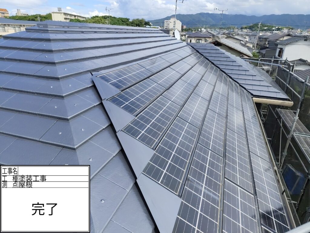 太陽光パネルの周りにある「鉄板部分」も同系色で塗装しました