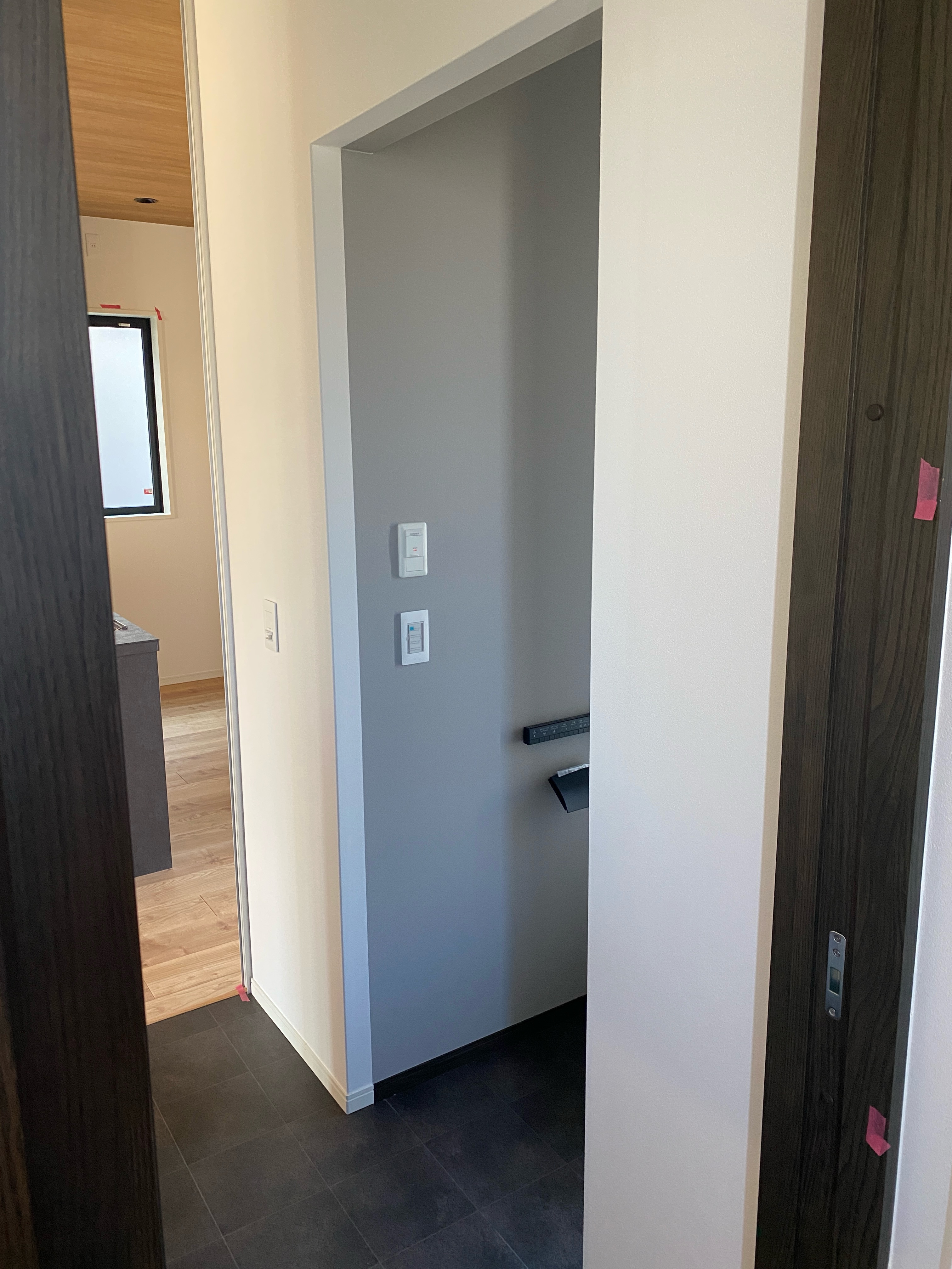 トイレ入口も同様に「下がり壁・ドア枠下地」を事前に準備いただきました。