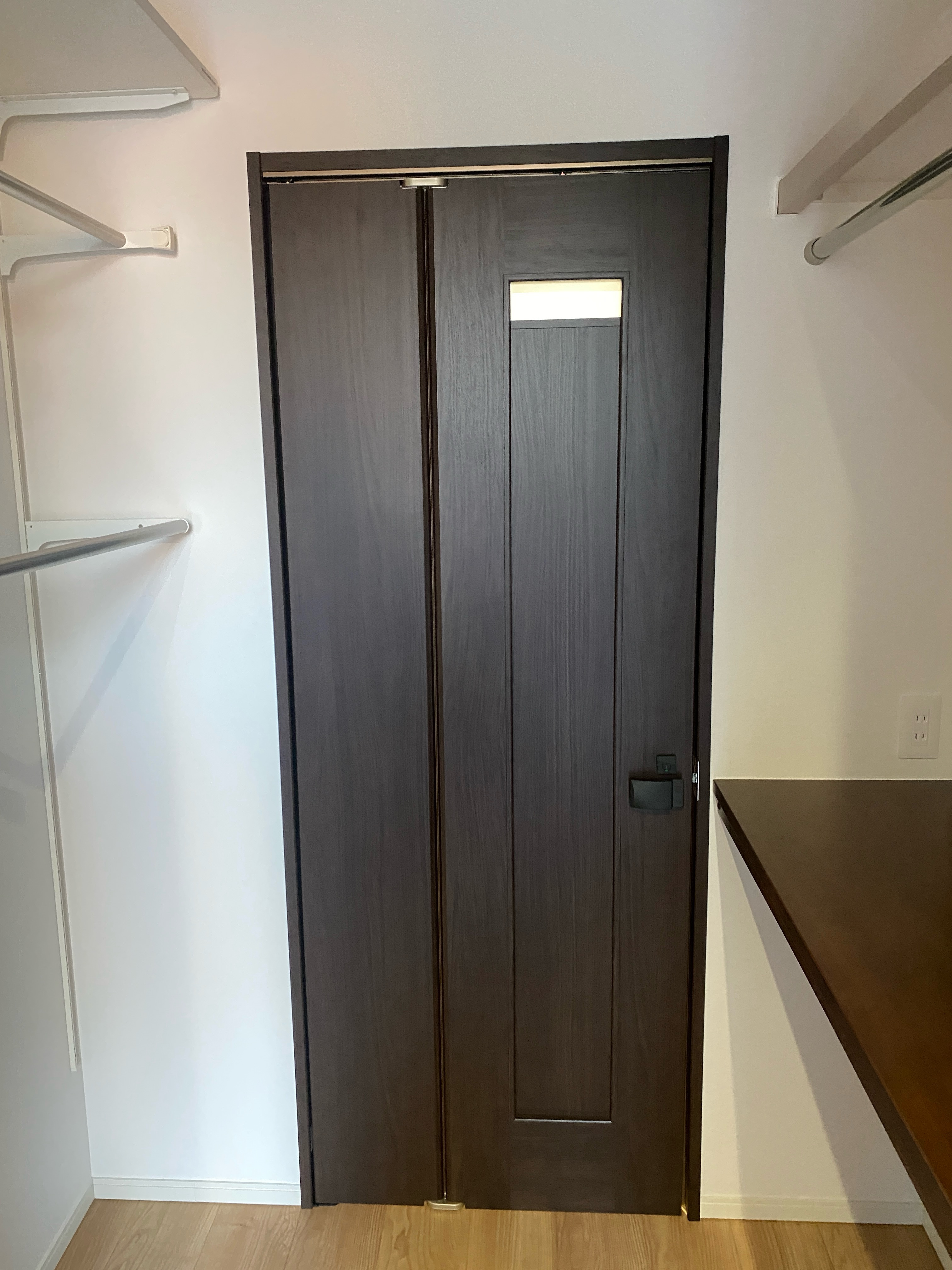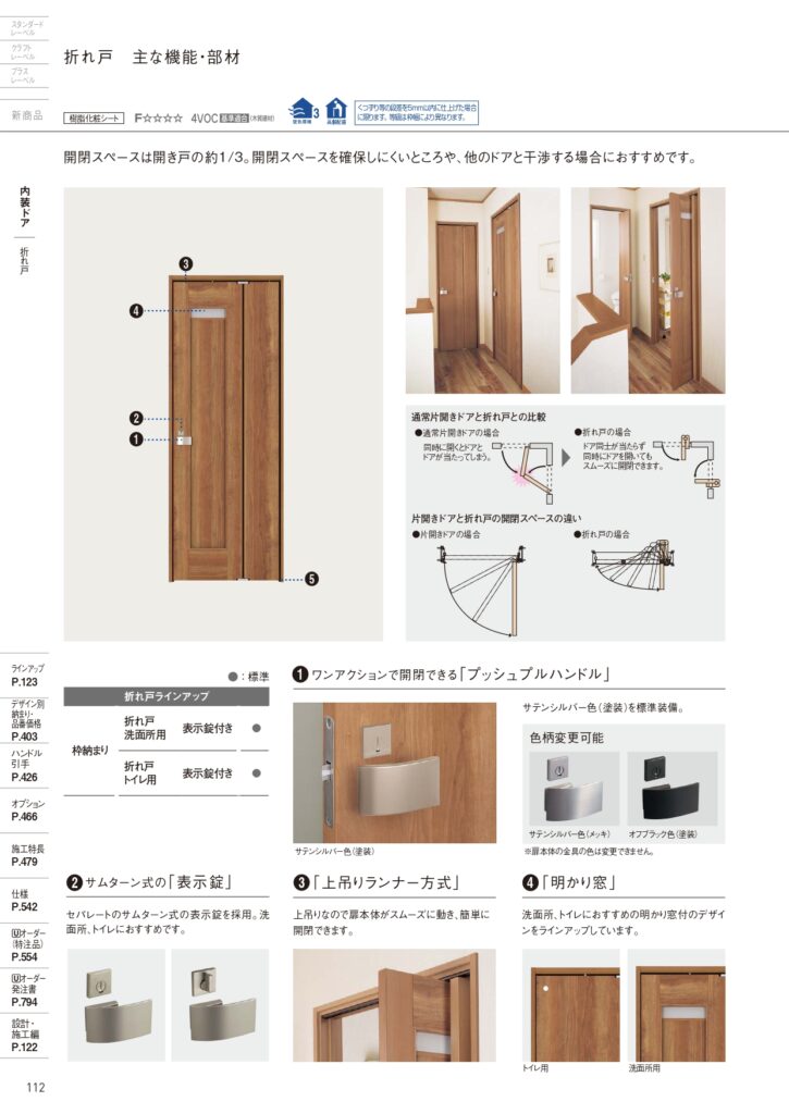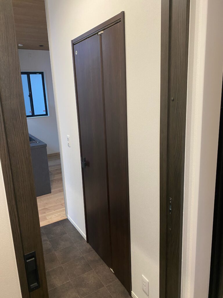 設計上、引戸で対応できれば問題ありませんが、開き戸設置の場合は、今回のような「折れ戸」は有効的だと感じました。